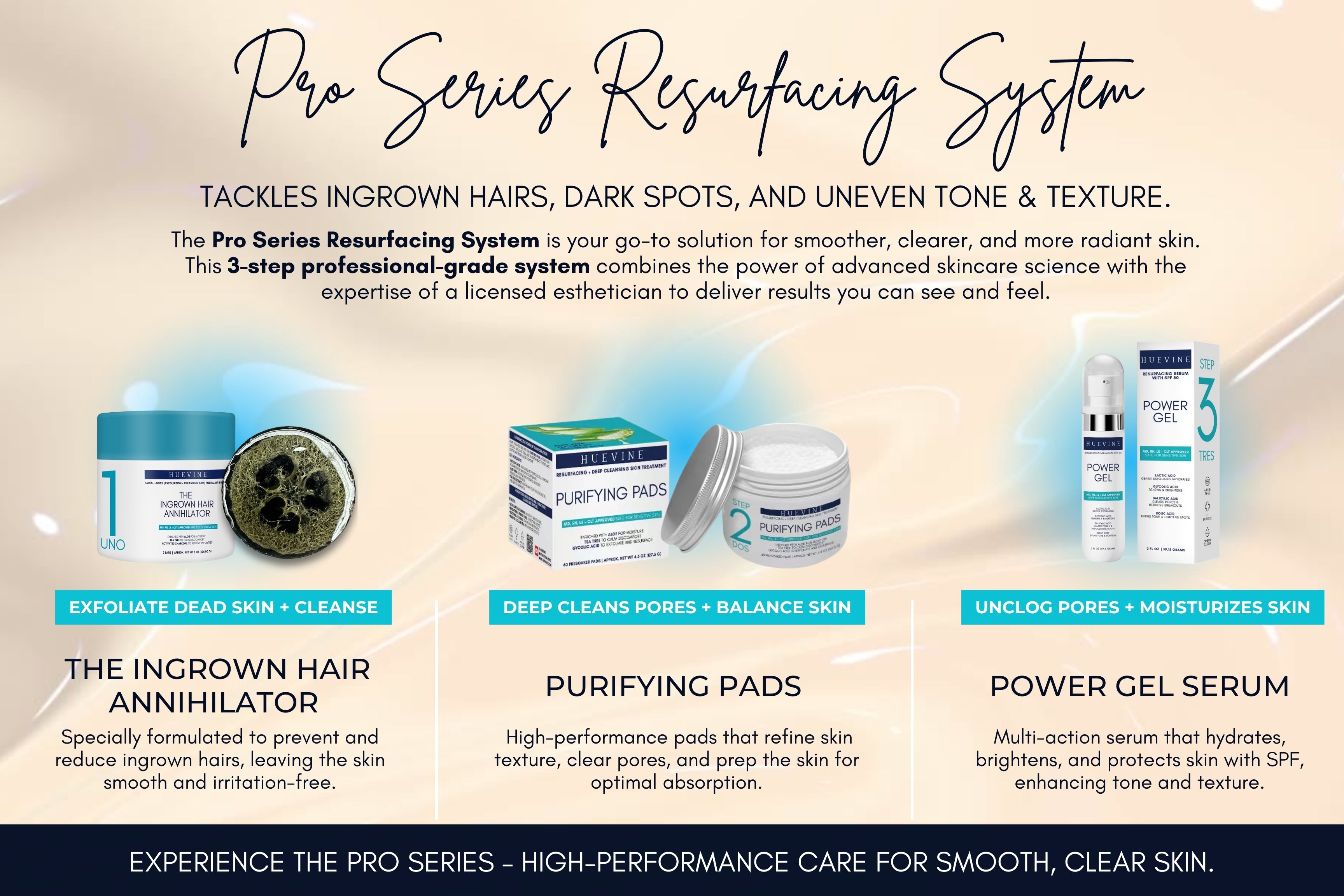 Upgrade your skincare routine with HueVine Skincare's 3-Step 4-Minute Resurfacing System, designed to deliver glowing, smoother, and healthier-looking skin in record time. Perfect for busy lifestyles, this dermatologist-inspired system simplifies your regimen while maximizing results.